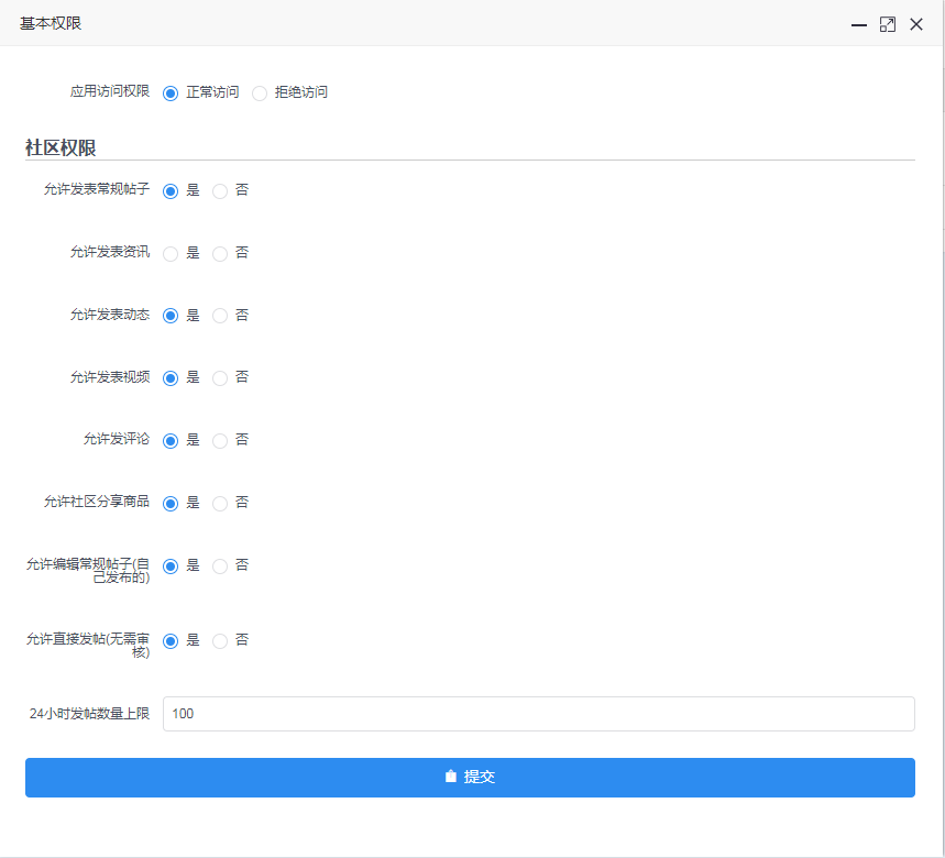 允许社区分享商品:用户能否在发长图文帖、动态、视频帖时添加需要分享的商品;