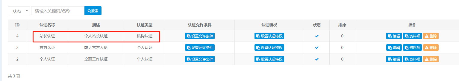 认证用户组与认证功能关联,认证用户组与认证类别相对应,会将认证通过的用户归类到对应的认证用户组。(如图,认证类别中有站长认证,用户通过站长认证后,系统就会将该用户归类于站长认证组)