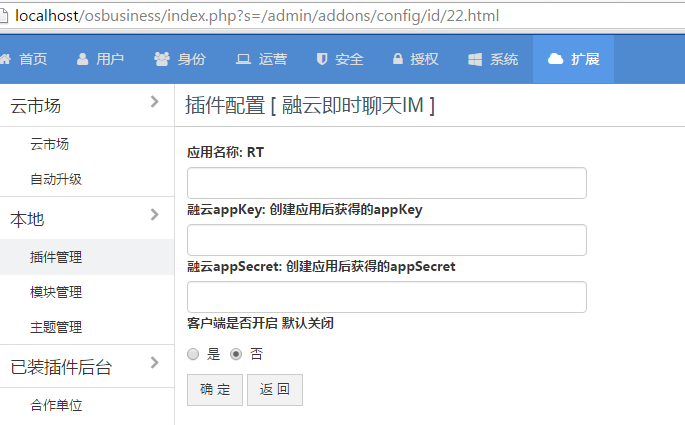 融云插件如何使用的?我在融云的官网注册创建了appkey和appsecret填上了,点击确定为什么还是没有效果?必须要申请上线吗?