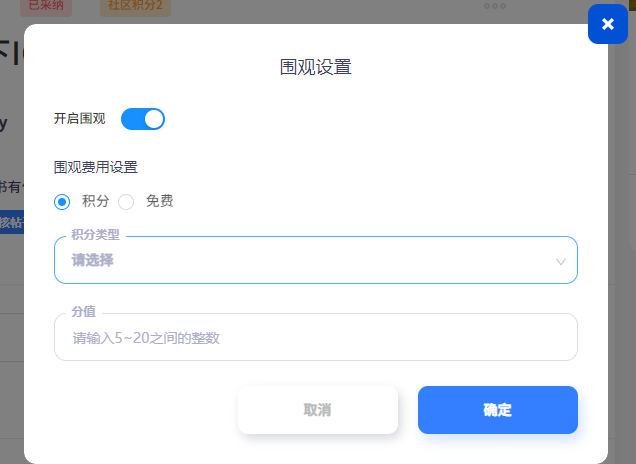 问题有被采纳的回答后,题主可配置围观是否开启及围观费用。