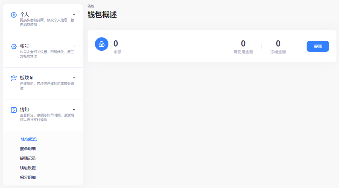 1. 支持用户开通钱包功能,支持分销收益提现到钱包,钱包余额支持商品购买、以及后续版本即将接入的其他支付相关业务;支持查看完整的账单记录,提现记录。